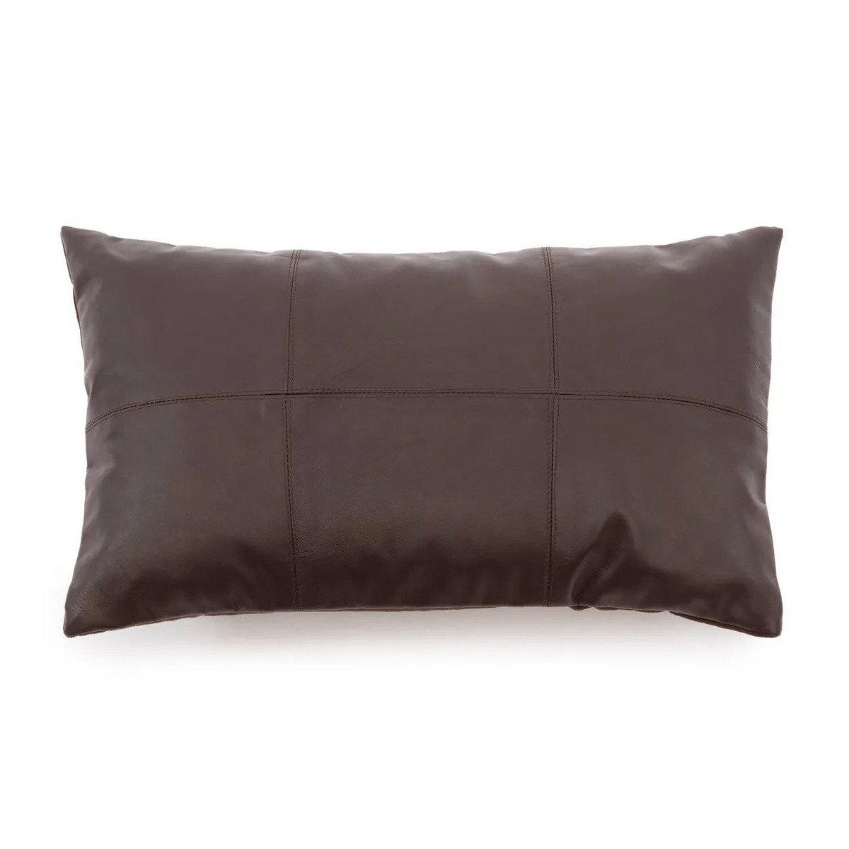Our chocolate coloured leather rectangular Six Panel cushion adds a stylish element of texture to your soft furnishings. An indispensable piece to add a chic vibe to your living room, bedroom or even in the garden or covered terrace. Endless possibilities to match with your personal interior style. The front of the cushion cover is made of soft calf leather while the back side is made of soft fabric. Inner Cushion not included!